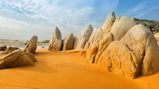 則評價客鳥尾石筍奇觀旅遊區位於揭陽市惠來縣靖海鎮舊厝村,各種石筍形態各異,千姿百態,栩栩如生,似飛禽,如走獸;臨海一角,更是一根根石筍沖天而起,突兀新奇、嶥嶸女挺秀,有的如彩帶拋向海底,如同草味,淑女挺有的海彩帶。漫遊穿行於筍林之間,海天一色,令人心曠神怡,流連忘返,真是濱海旅遊勝地。