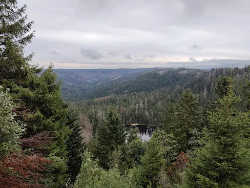 蒙梅爾湖在巴登巴登不遠處,是一個不大的被森林環繞的冰斗湖,繞一週也就15分鐘。湖的兩側都有上山的路,在入口處面對湖泊右手邊的一條山路上山,從左側可以坐旅遊bus上山頂,在山頂瞭望塔前可以看到萊茵河西邊的大教堂,是比較好的瞭望萊茵河的制高點,適合拍照。在山腳下的旅遊品紀念品商店,可以買到咕咕鐘還有嚐到地道的黑森林蛋糕。
