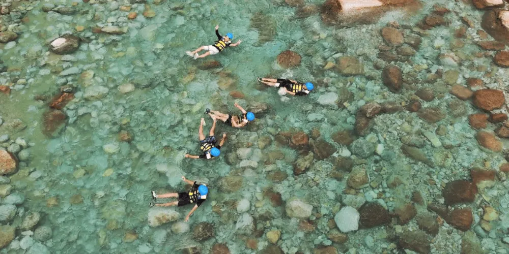 超然派景區峽谷氣候極具特色,「一山有四季,十里不同天」。景區內擁有迎賓瀑、鳳歌亭、跳潭、鳳潭、聽濤小築、壽桃潭、天然浴場、龍泉、品茗苑、聽濤小築、戒潭、天飛泉、龍潭、龍鳳閣、犀牛背、危岩聳石、中流砥柱、小天鵝湖等二十多處景觀。峽谷中翠竹亭亭,碧潭處處,亭台樓榭渾然天成!萬年不變的自然生態環境,讓人真切體會到「山光悅鳥性,潭影空人心」的滌蕩與寧靜。十里竹海大峽谷保持原始風貌的自然生態,負離子含量極高,是天然的大氧吧。這裡是漓江源頭,水質清澈見底,甘甜可口且富含礦物質。步入清幽峽谷,在奇險交織、飛瀑深潭的美景中,穿梭於如詩如畫的竹林,感受漓江源頭的驚險刺激,體驗十里竹海的奇幻美景,恍如踏入桃花源,令人驚嘆不已。