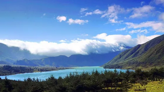 則評價這是一處高山冰蝕的湖泊,湖泊面積很大,在這裏可以看到各種各樣的動植物,還能看到雪山,一年四季的景色都很美。
