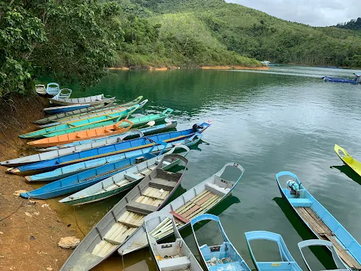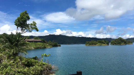 八塘涯湖離古晉大約有5小時車程,此地原來是大片森林,後來為了建設水電站而被改造成人工湖,原先的諸多山峰被水淹後就變成了一個個美麗的小島。來這裡可以看到熱帶雨林、胡椒園、橡膠園以及國境山脈等景觀。 這一帶是依班族人聚居的地方,當地的特色民居就是——長屋。 長屋是婆羅洲島熱帶雨林中特有的一種民居形式,它的地基很高,規模很大,往往是幾戶人家住在一座長條狀的房屋中。遊人可以通過旅行社代理在長屋住宿的業務,去長屋參觀或住宿時帶上一些小禮物送給主人,會讓他們很高興。