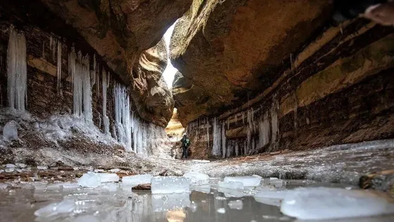 則評價慶陽黑老鍋冰窟與平日裏我們在秦嶺所見的冰瀑不同,是在地下的,原是隴山餘脈間黃土高坡上的一條小河,千百年的流水傾瀉,將相對堅實的土層切割成蜿蜒的溝槽,溝槽逐漸加深,穿透了地表土層,溝通地下暗河,形成了新的河道。隨着氣候的變遷,地表河水漸漸瘦而成溪,溪枯而變成季節流泉,並時有時無,地下水還一直自土層滲出,雖冬日而細流不斷,氣温降到零下時,便凝結成冰,日復一日,形成了這地下冰瀑奇觀。