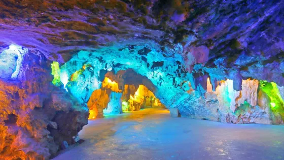 鹽井河景區原名青龍洞,形成與白堊紀年代,至今已有幾億年成長歷史。鹽井河景區已探明洞長6.6公里,目前開發洞長2.5公里。洞內景觀豐富,形態各異的鐘乳石栩栩如生,石瀑、石靈芝、石珊瑚、石柱、石花等奇觀隨處可見;鈣化池面積龐大,晶瑩如玉,碧水從天而降,形成了仙境瑤池景觀,被譽為“洞中黃龍”;洞中視野開闊,四個高約百米的洞廳首尾相連,穹頂各有特色,有的像掛滿繁星的浩瀚夜空,有的如國畫大師筆下的潑墨山水,奪人眼目、幻如仙境。洞內的洶湧暗河、地下峽谷等奇特景觀為鹽井河景區奇美的景觀。