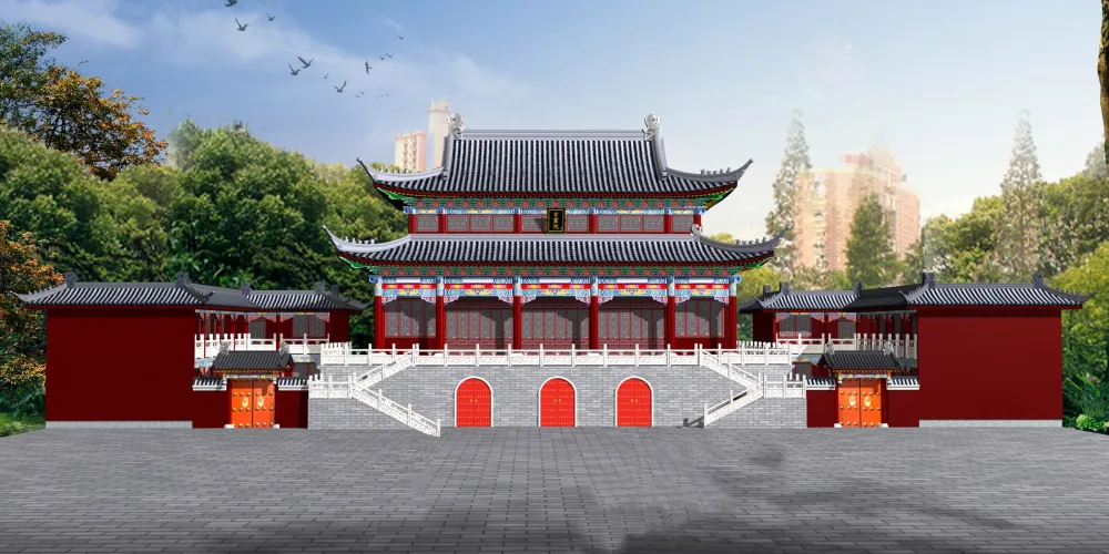 金頂建築上採用唐式風格,內外全部為銅包結構。其瓦柱門窗四壁皆為黃銅鑄造,在陽光照射之下,金碧輝煌、熠熠生輝。