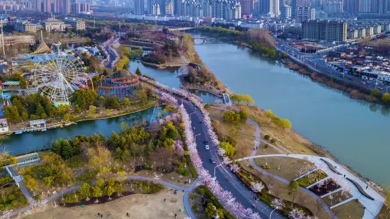 則評價櫻花園又稱蘇北野生動物園,位於古黃河與承德路相交處的東北方。敬愛的周恩來總理誕辰週年,為表達家鄉人民對他的緬懷之情,故以其喜愛的櫻花命名為櫻花園。走進櫻花園,首先映入眼簾的是大理石欄杆的攬勝橋,櫻花園的橋多姿多彩,形態各異,個性凸顯。自西向東,還有臥龍橋、金川橋、花王橋、仙女橋、鵲橋、攬月橋和問梅橋,共計八座。每座橋的橋名都與大家熟知的歷史故事有關。人在橋上走,水在橋下流。