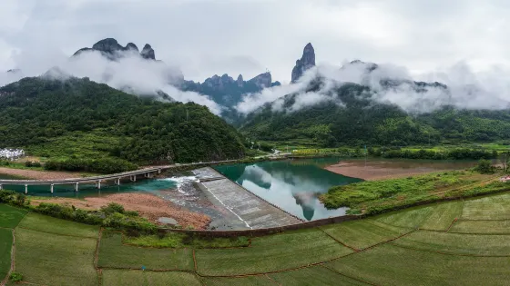 但凡看山景,必須是要爬山的,景區設定有索道,可以省去爬山的苦惱。 若不願爬山登嶺,也可以沿著曲曲彎彎的幽谷,踩著平坦如砥的山徑緩步而入,一路上便可飽覽十裏幽谷千重峭壁、萬丈懸崖的險峻,咀嚼到霧繞雲低、鳥唱蛙和的清幽。