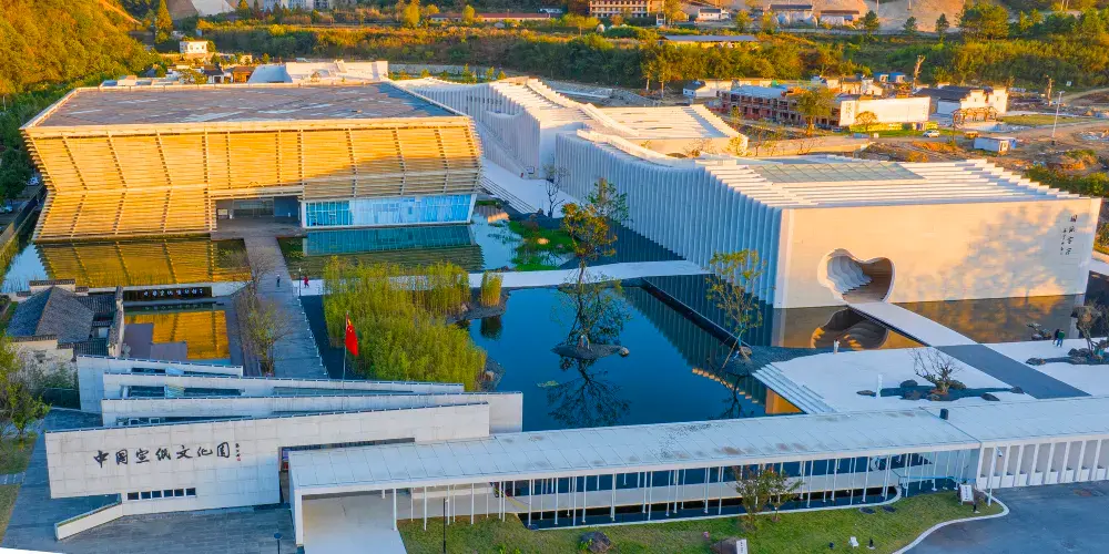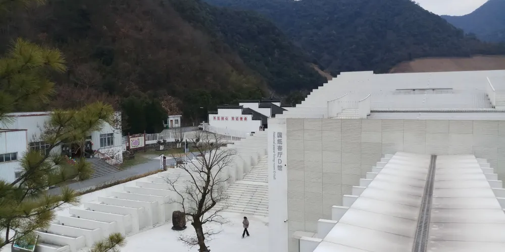 中國宣紙小鎮位於安徽宣城涇縣烏溪,以「紙壽千年」的宣紙發源地為依托,佔地約3平方公里,群山環抱,烏溪蜿蜒,核心建築國紙客廳取「紙山行」意境,白色清水混凝土切片似萬張宣紙層疊,人入其中,如行水墨長卷。小鎮佈局六大功能區:技藝展示區可直擊108道古法工序,親手撈紙、曬紙;藝術交流區常駐書畫大師揮毫;活力產業區聚集300餘家宣紙及文房四寶企業,年產宣紙600噸,佔全國總量九成;藝術怡養區與配套服務區提供國風民宿、研學課堂與文創市集。從博物館千年圖文到水街夜燈,從大國工匠現場演繹到親子體驗「第一張紙」,小鎮正以「宣紙聖地、文創高地、藝術寶地、旅遊勝地」的全新姿態,邀世界共享千年非遺之美。