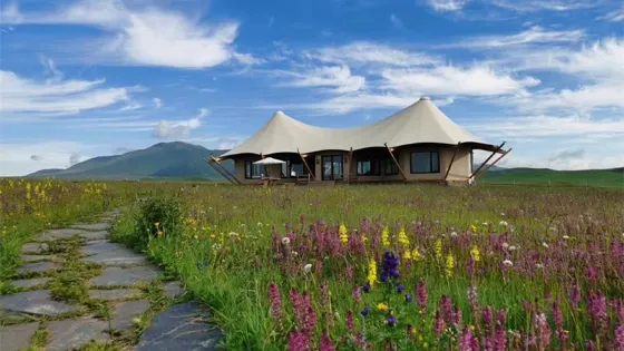 則評價在中國甘南州夏河縣,有一個地方叫阿米貢洪。阿米貢洪景區位於甘肅省甘南藏族自治州夏河縣阿木去乎鎮,面積8平方公里,交通便利。距夏河機場3公里,距夏河縣城55公里,距合作市45公里。阿米貢洪神山是這片水土藏民族文化的精神力量與智慧之所,而阿米貢洪·牧場,就徜徉在神山的懷抱裏。在神的眷顧下,雪融水濕潤着的九色花溪,有長達六個月的花期;在神的眷顧下,牛羊與牧人都是這片草地上自由的生靈。這裡有着美的草原天際線,有着無垠珊瑚色的草原花海,也有着傳統生活方式與現代旅居度假結合起來的帳篷酒店。當旅人深入阿米貢洪,精神家園與營地界外的世界將短暫告別,成為了阿米貢洪神山庇護下的自由生靈。