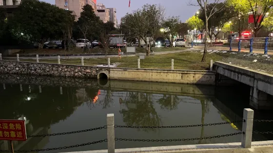 市橋河公園以沿河景觀道路為中心,築起一道小橋流水的景觀,河的兩岸花樹繁茂,景色優美。