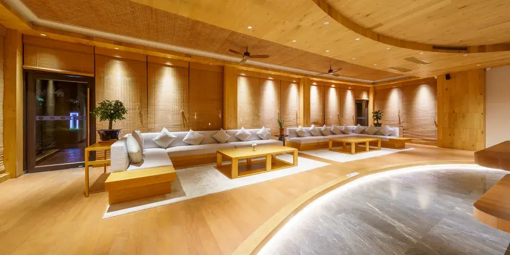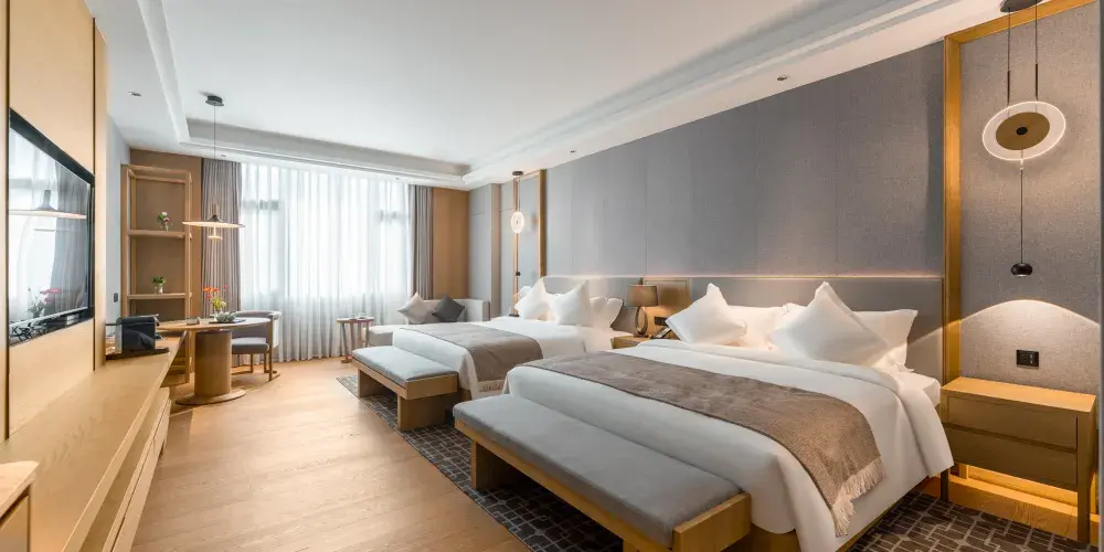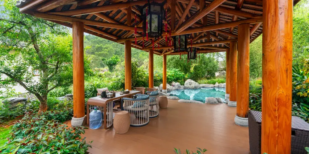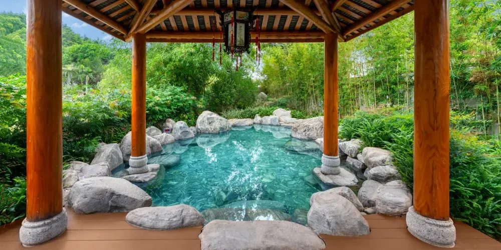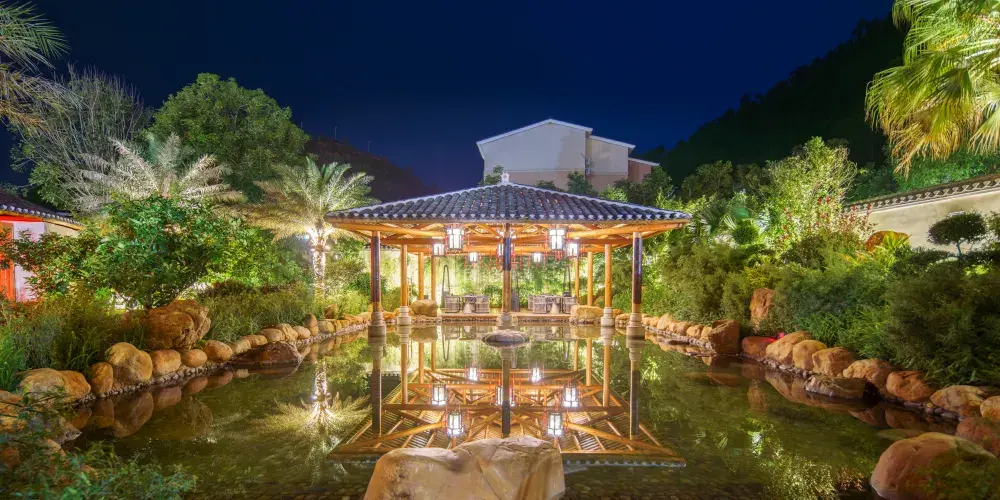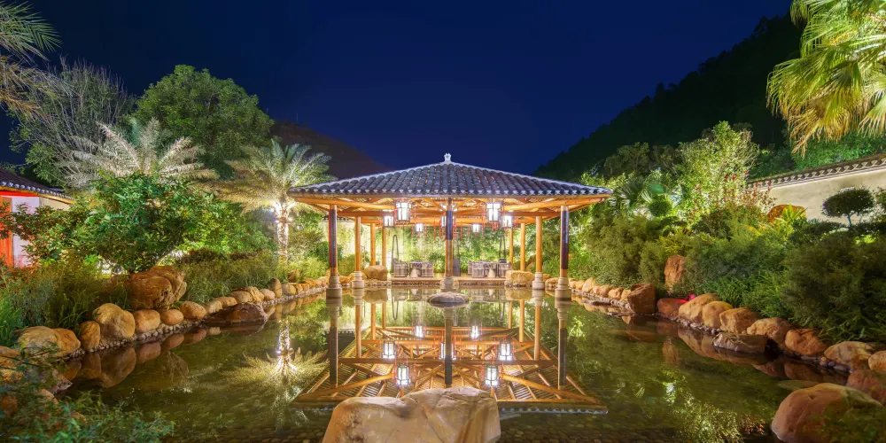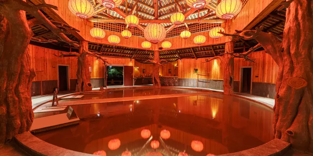 客房服務:目前温泉別墅區共有9棟別墅和商業綜合樓總共109間客房,可容納200人以上住宿,其中別墅區客房共有標準大床房、標準雙床房、標準套房、高級套房、豪華套房五種房型。客房裝修典雅,温馨舒適,所有用品傢俬煥然一新。每棟別墅後均有一個後花園和獨立温泉泡池,閑暇之時,可在此品茗泡湯,感受温泉淋浴帶來的舒適體驗;綜合商業樓3樓客房共有豪華大床房、豪華雙床房、商務(娛樂)套房、總統套房4種房型,共11間客房。客房匠心打造奢闊空間,細節考量,空間延續,讓功能與居住品質兼具,品質空間,藏納生活萬般美好,一切從”心“開始,這裏不僅僅是一個短暫停留之所,更是一個您可以參與、體驗的休息之地。