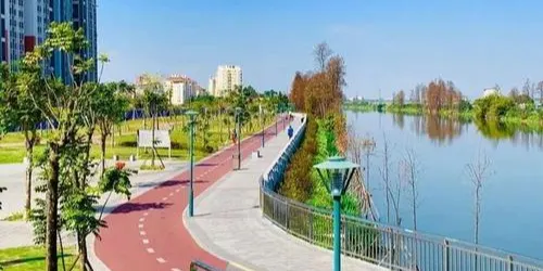 濱河公園,層林盡染,楓樹、水杉、銀杏、烏桕、法國梧桐等樹木呈現出五彩斑斕的景色,形成一道獨特的風景。