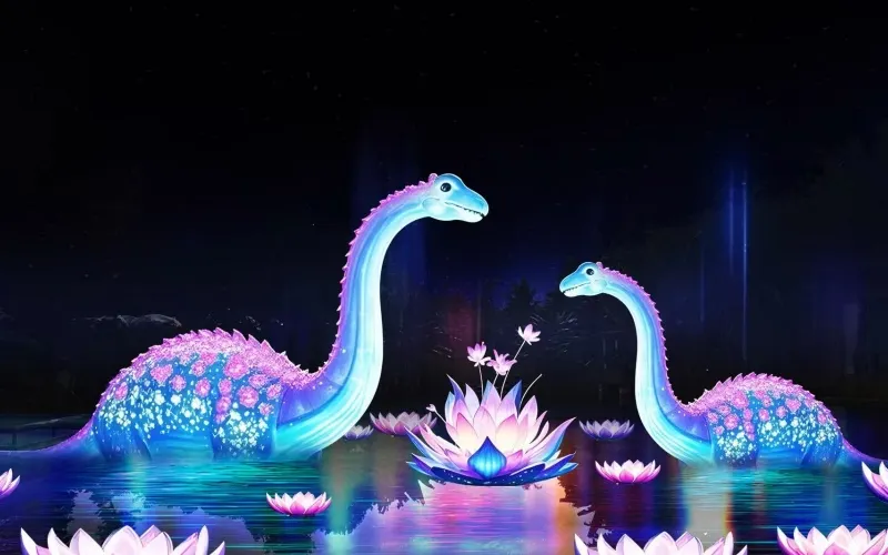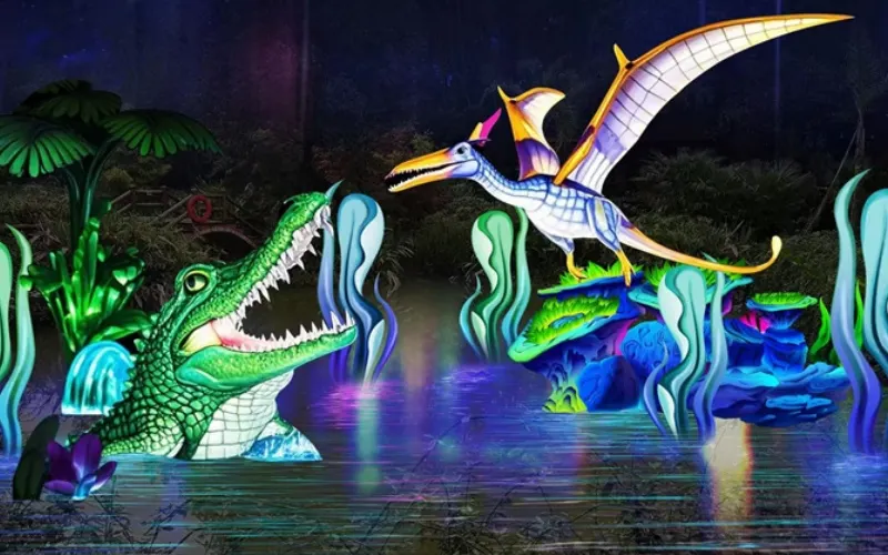 景區項目包括:接駁車服務、恐龍真人NPC、史前霸王龍、古生物化石科普館、腕龍擎天、流光瀑布翼龍、侏羅紀恐龍集群世紀火山燈組、非遺彩燈、松鼠森林、蘑菇森林、蝴蝶谷、生命之樹、恐龍花谷、恐龍騎乘、迷你兒童樂園等主題,還有野人表演、魔術表演、叢林尋寶沙灘考古、璀璨星河等活動。