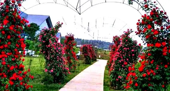 鳳鳴花谷位於四川省眉山市彭山區,佔地遼闊,喜慶氣氛濃厚。這裏的展廳展出的是各個種類的鮮花和奇形怪狀的小物件。這裏樹木葱鬱,繁花盛開,美不勝收。