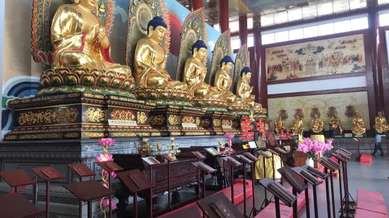 金光明寺坐落在福建省詔安縣鳳山山脈腳下,主要供奉金曜佛母大孔雀明王菩薩,是孔雀明王法脈的傳承道場。寺院主體寬廣,非常宏偉,主要殿宇有:天王殿、離苦得樂殿、和光賜福殿、大雄寶殿等,仿古風格、民居風格多姿多彩,象徵四眾弟子共證同歸。