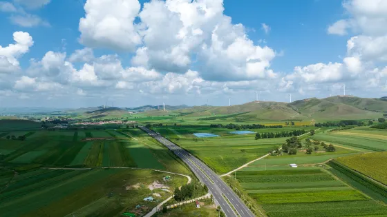 草原天路,號稱“中國的66號公路”,公路沿途有草原、風車、梯田、岩壁等多種美景,是北京周邊週末觀光攝影的好選擇。草原天路西起張北縣城南側的野狐嶺,東至崇禮縣樺皮嶺處。草原天路夏季處處是野花盛開,秋季則是金黃一片。遊玩時從野狐嶺和樺皮嶺兩側進入都可以,一路都是美麗的景色,而且由於公路坡度較大,常可以看到公路盡頭就是天際線的“天路”景觀,隨處下車拍照都是美景。