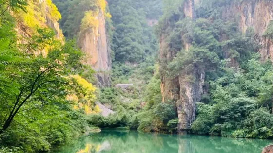 白石崖自古有三絕:一為奇峯,千峯壁削,崖白如銀;二為幽谷,狹谷如線,曲幽深邃;三為飛瀑,三瀑飛落,蔚為壯觀。三絕風光,珠聯璧合,融為一體,巧繪人間仙境。除此“三絕”,白石崖還有諸多溶洞、奇石,是豫西地區一個不可多得的巖洞羣景觀。白石崖峽谷長達3.5千米,谷兩側對峙山崖垂高均在千米左右,安設在鑽天峽內崖上的鐵木混合棧道全長1830米,高度均在1300米以上,人行之上,大有人在天上走,腳下白雲飄的感覺,號稱“黃河流域一天路”。