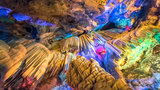 則評價雞冠洞是一座天然石灰岩溶洞,屬於喀斯特岩溶地貌,雞冠洞斜入地下長達1000多米。雞冠洞冬無嚴寒,夏無酷暑,走在裡面會覺得很涼爽。遊覽雞冠洞需在景區導遊的帶領下成批遊覽,當你在洞中游覽時,可以看到一座數十米高的巨大廳堂,洞中還有一條奔流不息的河流。雞冠洞中佈滿了石柱、石塔、石瀑等,在燈光照耀下,尤其美麗。