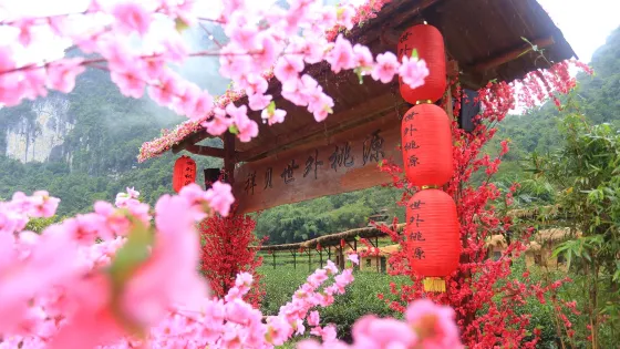 則評價宜州祥貝世外桃源位於宜州祥貝臨江河,又名下梘河,2017年12月17日,榮膺全國首屆“美家鄉河”稱號。兩邊竹林翠綠,山奇,水秀,洞幽,石美。更是電影《面紗》的拍攝取景地之一。享有“不是灕江,勝似灕江"的美譽。坐船穿過水簾洞,看見百畝茶園,更有桃花源美景。恰是陶淵明《桃花源記》描述的景象“林盡水源,便得一山,山有小口,彷彿若有光。便舍船,從口入。初極狹,才通人。復行數十步,豁然開朗。土地平曠,屋舍儼然,有良田美池桑竹之屬。阡陌交通,雞犬相聞”還有許多精彩的演出,如《歸源》-廣西沉浸式實景劇、《天外飛仙》-廣西威亞實景拍攝基地、《桃源小藝》-展示田園耕耘風光,趣味互動實景演出、《人間仙境》-煙霧繚繞的仙境美景,置身其中而流連忘返。