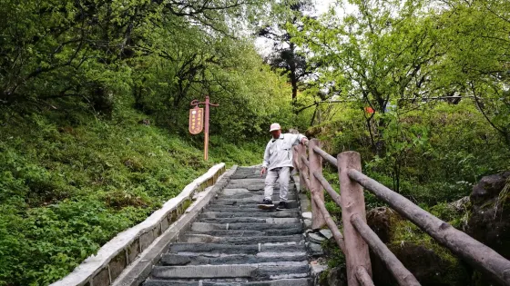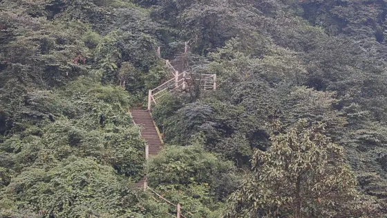 則評價在九嶺崗與洗象池之前有一段陡坡,就是鑽天破。這段山路全長約2.5公里,近1500個石台階,坡度非常陡,較陡處接近80度。這也是峨眉山很自虐的一段路了,考驗你的體力、耐力和膽量。因為山勢陡峭,這段路上沒有小賣部、衞生間等,需要自帶些乾糧和飲用水。如果你有恐高症,路途中建議不要往下看,因為坡度太陡,會引起不適感。如果你對於九十九道拐非常的畏懼,那麼就不需要挑戰這裏啦。