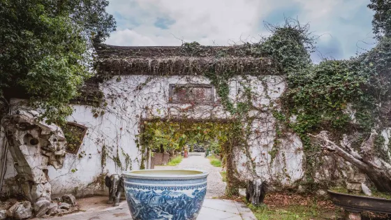 則評價餘苑是天香園的園中之園,未進苑先聞到轟隆水聲,這正是餘苑的點晴之作——飛瀑,此瀑高12米,寬70米,這是江西省較大的人工瀑布景觀。餘苑以瀑為屏、東居佛、西築亭。佛為六噸重笑面迎客佛。亭為天地雙亭,兩亭比肩而立,亭角相攜,寓意:天地和諧、風調雨順。此苑斜對面是曲回長廊,依水而築古意深醇,彎延至處是民居小樓,數十棟各種明清風格的江南小居,散落在森幽的古樹林中。