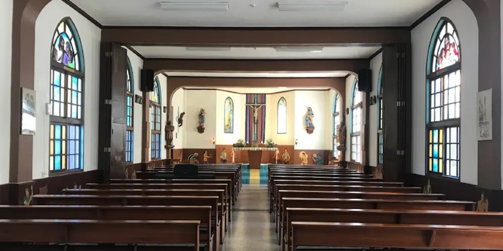 教堂內裝有丁神父親手設計的彩色鑲崁玻璃,還有牆壁上也畫滿了以當地少數民族為主題的壁畫及木刻,清泉天主堂已成為清泉地區很吸引遊客的觀光點。