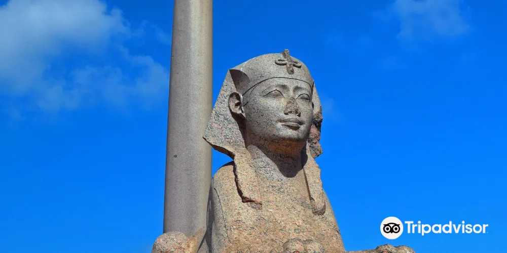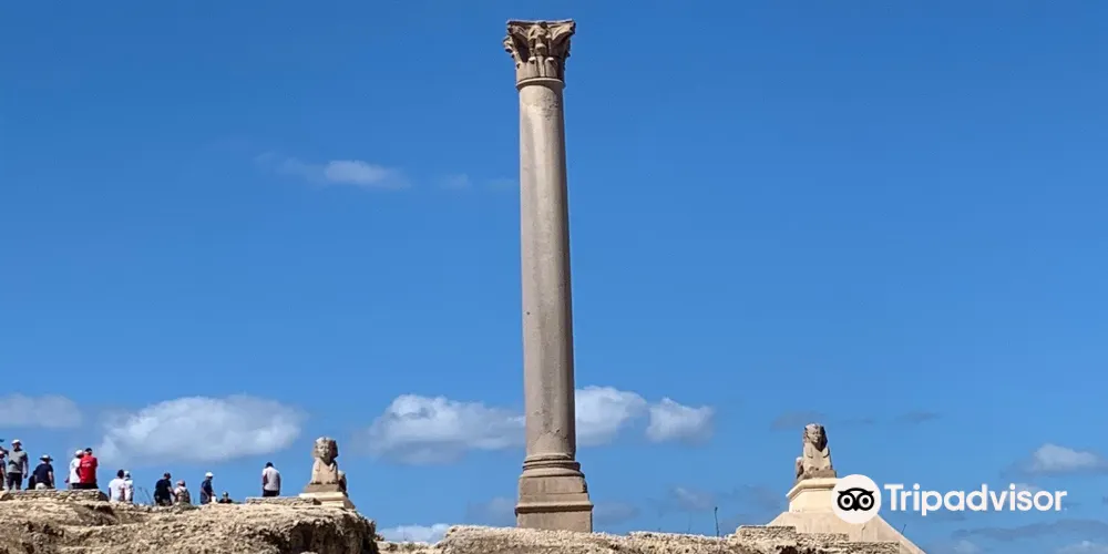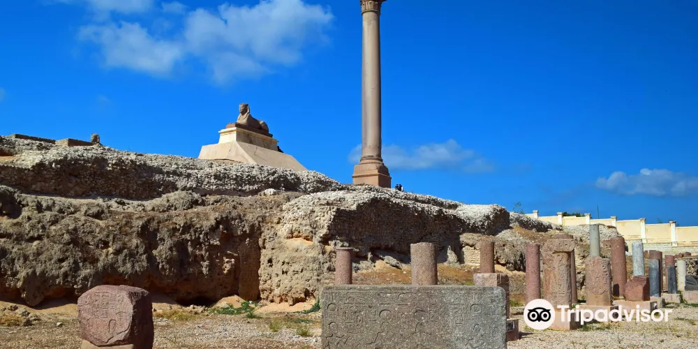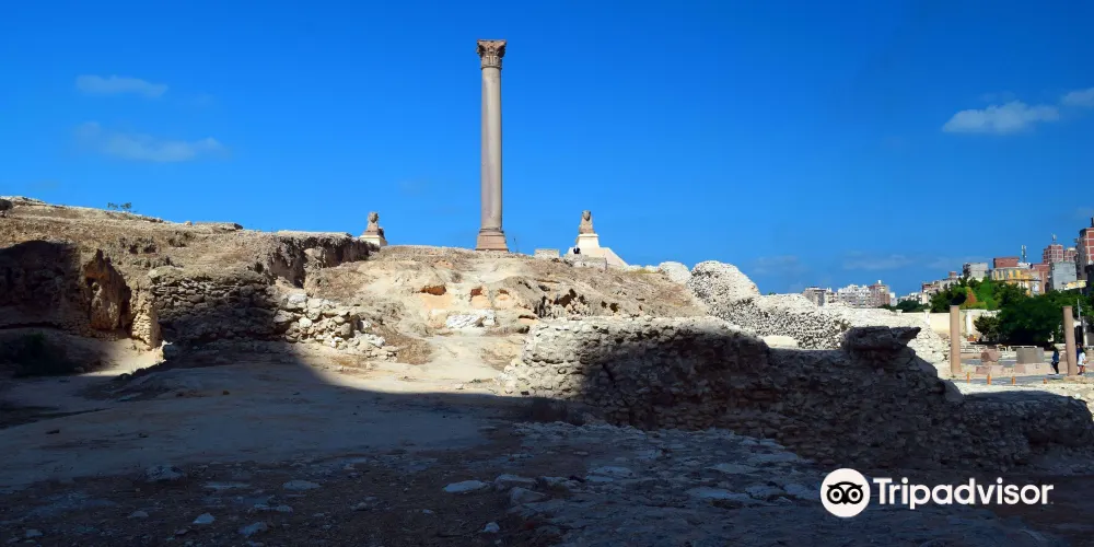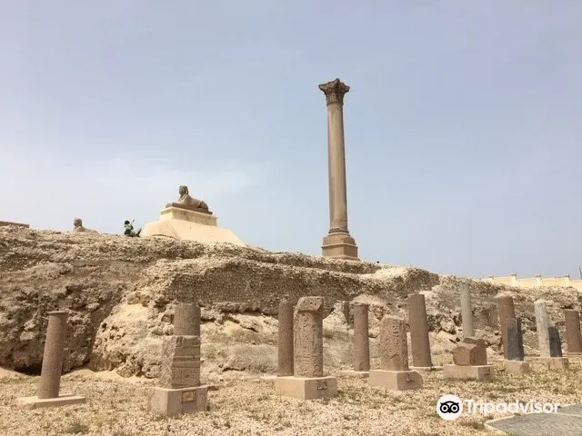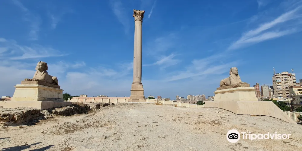 龐貝柱聳立在塞拉比尤姆神廟(Temple of Serapeum)的廢墟上,需要攀登上100級台階才能抵達。龐貝柱是一根高22米的巨大圓柱,用紅色的阿斯旺花崗岩砍鑿而成,這就是著名的龐貝柱,它赫然聳立在羅哈克提斯(Rhakotis)山丘的遺迹上,亞曆山大大帝就是在這裡長大的。數個世紀中,龐貝柱已經成為亞曆山大的主要景點,它的主體是軸狀的錐形花崗岩,地基深達2.7米,頂端是精美的科林斯柱頭。龐貝柱底部的碑銘顯示,圓柱建立於公元291年,是用來支撐戴克裡先(Diocletian)皇帝的雕像的。