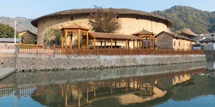饒平縣水波樓旅遊風景區具有“紅色古村樓,客家山水謠”稱號,古村落主要由三座客家土樓南陽樓、福海樓、東華樓組成“品”字型,古喻三珠合壁,取客家人團結,拼博,互助之意。