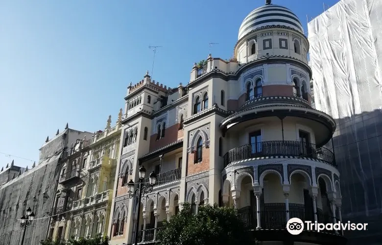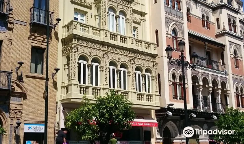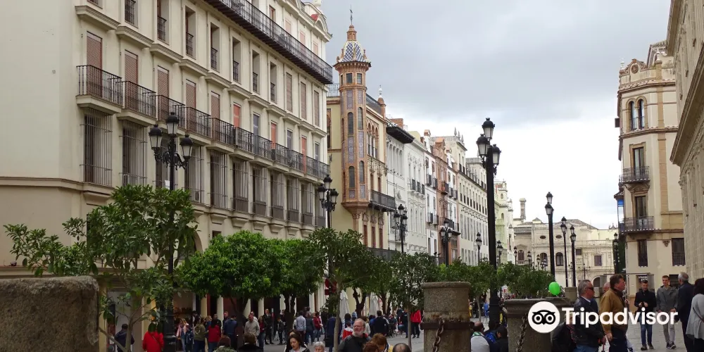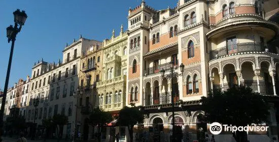 則評價西班牙廣場位於城南環境幽靜、氣氛清新的瑪利亞·路易莎公園中,其新月形的古典建築在綠地簇擁之中別具典雅姿態,是深受塞維利亞市民歡迎的休憩場所。這裡曾經是一座官邸,1929年因塞維利亞承辦會展的需要新建了這座西班牙廣場,這座新月形的建築群由宅邸、拱橋、噴泉、水池組成,長廊旁的馬賽克壁龕畫描繪著西班牙58個不同區域的歷史畫面,很有趣味。
