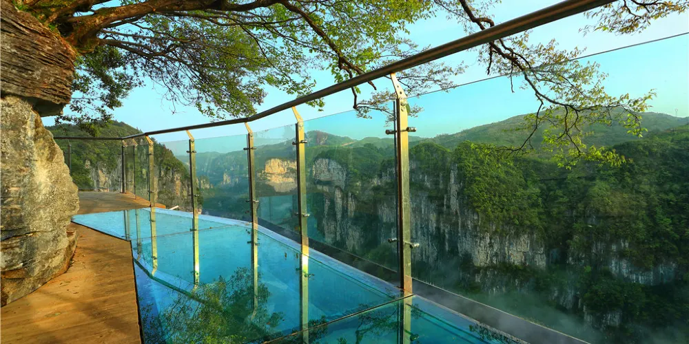 德夯大峽谷地處張家界-鳳凰一線的必經之路上,有別於屬石英砂岩地貌的張家界顯現出的陽剛之氣,屬石灰石岩溶峽谷地貌的德夯大峽谷具有婀娜之秀美。沿著幽長的峽谷,可以登上峽谷中的一個至高點—天問台,看四周環繞的石筍般的山峰,追憶當年屈原含悲問天的情景。爬一爬盤古峰在峰頂能俯瞰德夯苗寨,造訪落差極大的流沙瀑布,不禁心境開闊。