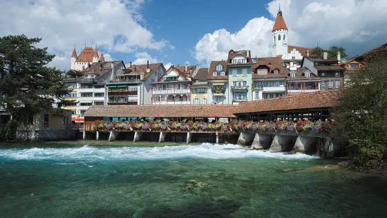 圖恩城堡位於圖恩湖西北角的阿勒河畔,由柴林根公爵建於12世紀末,當時是一座純粹的辦公城堡。15世紀,伯爾尼人對這座引人注目的建築物進行了擴建,使其擁有了壯觀的屋頂。
