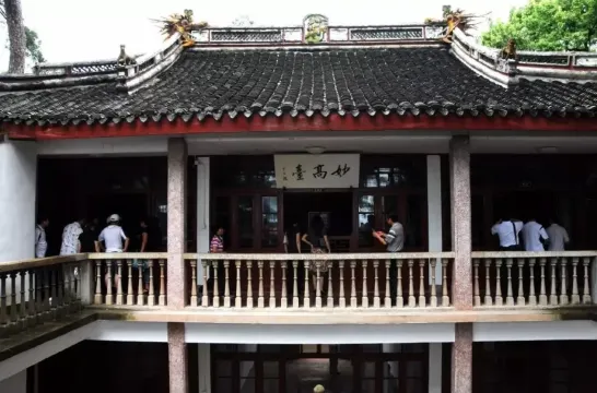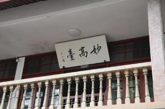 妙高台后面的建筑是1927年建造的私人别墅。抬头所见,二楼中间悬挂着白底黑字的“妙高台”横匾。整座别墅,分为二层,上下平房共六间,用西式平台连成一体,总建筑面积436平方米。走进大门,一楼中间是个天井,两边平房各一间;二楼水泥走廊与阳台相连,中间是会客室,东边为卧室,西边为书房。