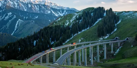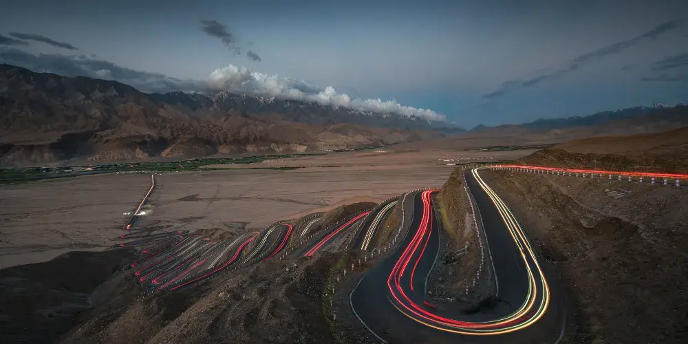 帕米爾高原上的盤龍古道位於喀什地區塔什庫爾幹塔吉克自治縣瓦恰鄉,因其壯觀的自然景觀和複雜的路況而聞名。公路盤山而建,其蜿蜒曲折連彎的特色車道,大有“九曲十八彎”之勢,在山頂高處向下而看,蔚為壯觀。公路沿途經過白沙湖、喀拉庫裏湖和慕士塔格峯等著名景點。公路的S形彎道多達600多個,形成了獨特的景觀。沿途的雪山、峽谷、草原和湖泊等自然景觀讓人歎為觀止,讓每個彎道都充滿了挑戰和刺激。道路時而緊貼山崖,驚險刺激;時而穿越彎道,歡樂無限。沿途,不時有牧民和羊羣映入眼簾,那悠閑自然的牛羊牧歌場景,為這趟旅程增添了幾分温馨與和諧。