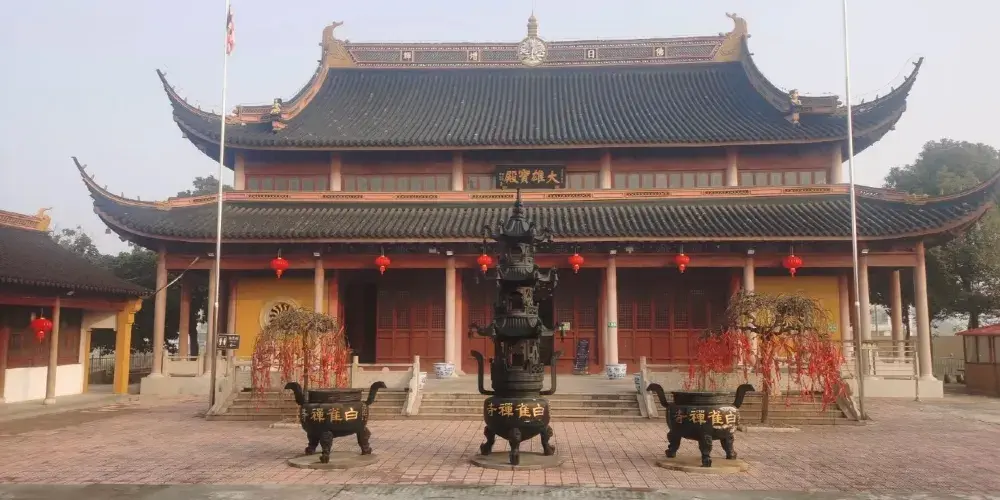白雀寺相傳為南朝梁代天監初年,由僧志圓所建,距今1500餘年。寺成之日,有白雀築二巢,故以名寺。白雀寺屢建屢毀,現為90年代重建。該寺現建成頭山門、大雄寶殿、輔助香佛堂等建築面積885平方米。寺內包括月河、場地、綠化等,佔地面積6900平方米。太平盛世,千年古剎重輝,遊覽此寺,恍若隔世。