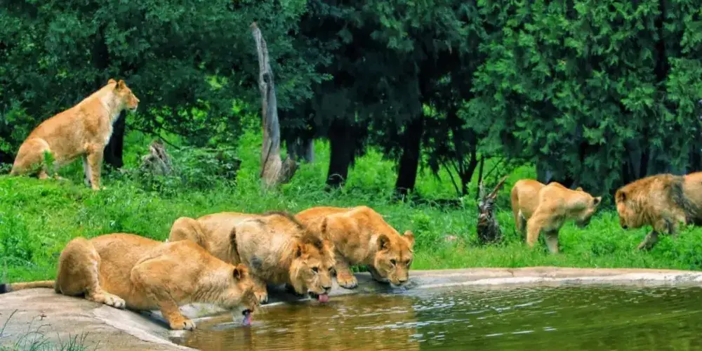 車行區的食肉動物展出部分位於動物園的南部,由東向西依次是虎、非洲獅、熊、狼。如果你想近距離觀看動物可以乘坐景區內的“投食車”(車費以現場價格為準,不包含在景區大門票內,遊客自願購買)。
