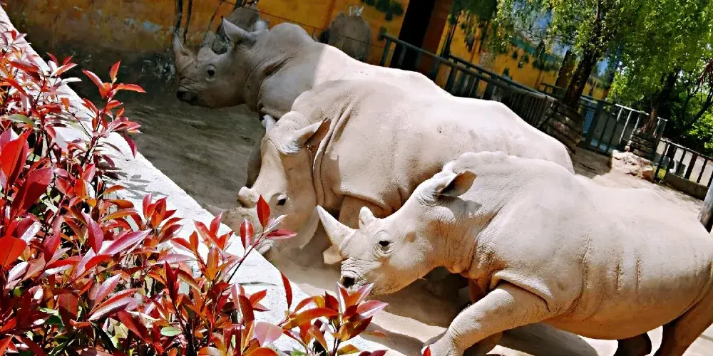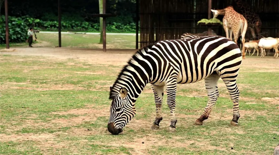 車行區包括食草區和猛獸區(觀光車的費用包含在景區大門票內)。車行區的食草動物展出部分位於動物園的東半部,又分為東、西兩部分,其東半部為產於非洲的食草動物,由長頸鹿館、斑馬館、角馬館、羚羊館;西半部為產於亞洲的食草動物,有我國特有的白脣鹿、有沙雙峯駱駝、氂牛等。