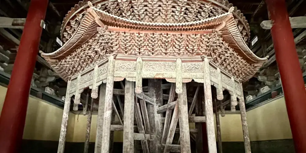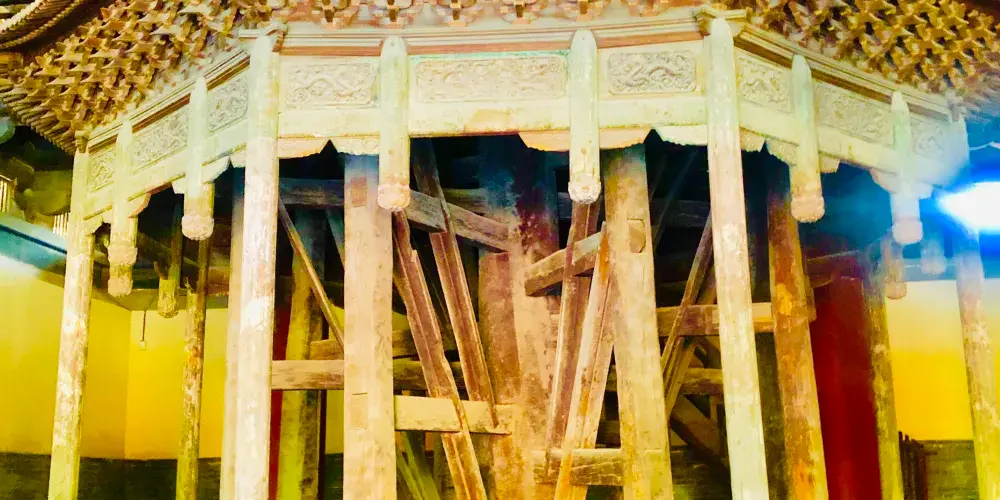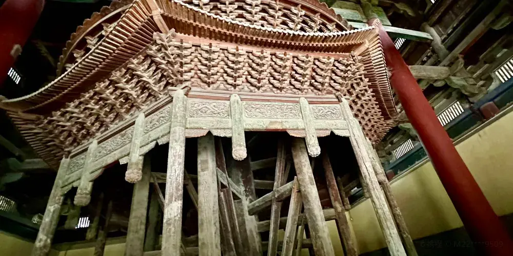 摩尼殿係另一處不容錯過嘅重點景觀,殿內北壁供奉一尊五彩倒坐觀音菩薩像,其姿態獨特、色彩絢麗,造型極具寫實感與神性美。魯迅先生曾盛讚該像「將神人格化」,被譽為「東方美神」。此外,摩尼殿本身建築風格鮮明,為宋代原構,其斗拱做法尤為特殊,被著名建築學家梁思成推為宋代建築中嘅「孤例」,具有極高嘅建築藝術與研究價值。