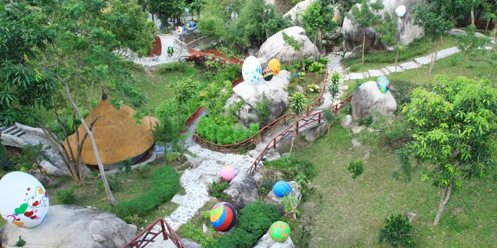 百蛋泥漿浴主題樂園位於風景如畫的芽莊市,這座獨特的主題樂園以其天然的泥漿浴和溫泉體驗吸引著無數遊客。公園因其眾多形狀像蛋的泥漿浴池而得名,這些浴池分佈在鬱鬱蔥蔥的熱帶花園中,為遊客提供了一個與大自然親密接觸的機會。泥漿浴以其豐富的礦物質成分而聞名。除了泥漿浴,公園還提供多種溫泉體驗。溫泉水源自地下深處,富含礦物質,溫暖舒適,遊客可以在不同溫度的溫泉池中選擇適合自己的體驗。溫泉區設計精美,周圍環繞著自然景觀。公園不僅提供泥漿浴和溫泉,還設有多種娛樂設施。遊客可以在泳池中暢遊,或在按摩區享受專業的物理治療服務。此外,園區內還有餐飲設施,讓遊客在享受健康療法之餘,也能品嚐到美味佳餚。