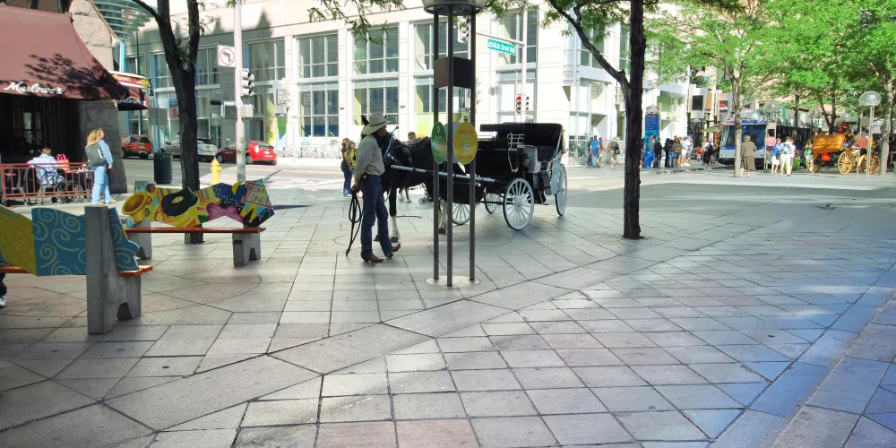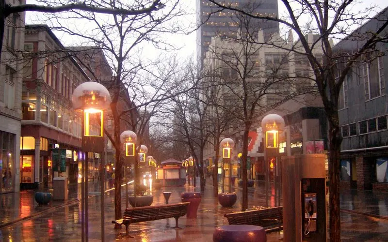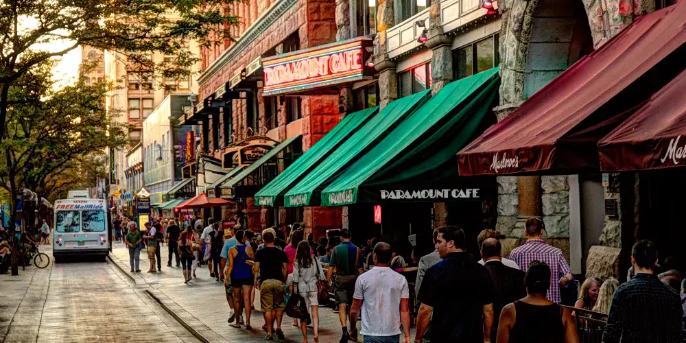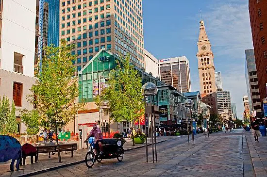 當你來到丹佛,第16街商業步行街是個必遊之地。這兒有許多商店、酒吧和餐廳,還有一定要去逛展覽館商場,內有酒吧,電影院等等設施。丹佛市十六街以充滿人文精神和富有變化的街區景觀,為居民提供了一個舒適、美麗且富有文化氣息的優質生活空間。它貫穿了整個市中心的商業區,全長衹有1311米,是行人徒步區。街道周邊有許多酒店、寫字樓、商店、餐廳、電影院等各種設施。