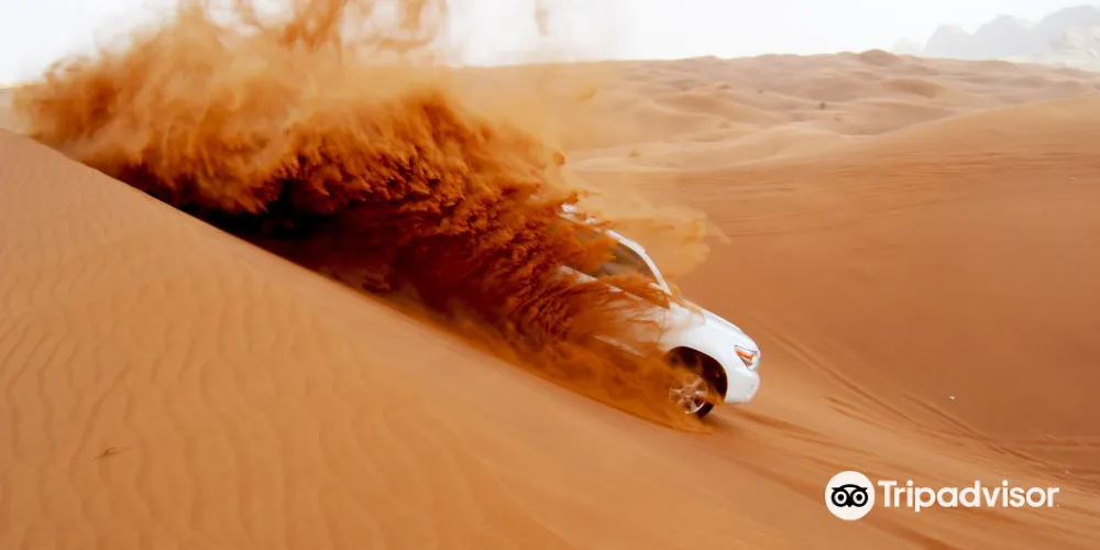 迪拜是在沙漠上建起來的城市,無際的沙漠也成為迪拜的旅游資源。衝沙是來到迪拜的遊客幾乎都會去體驗的特色玩樂項目。衝沙一般都會安排在快要日落的時間進行,沙漠中的溫度不會很熱。乘坐吉普車在高低起伏的沙丘上急速穿行,感受失重和速度帶來的刺激。到了晚上,還可以在沙漠營地品嚐阿拉伯烤肉、觀看肚皮舞表演。