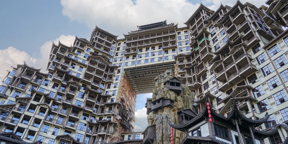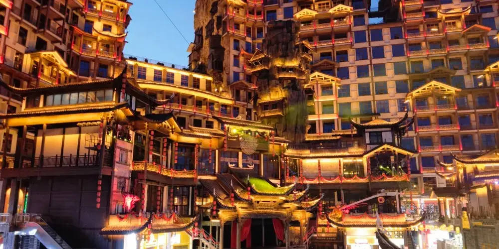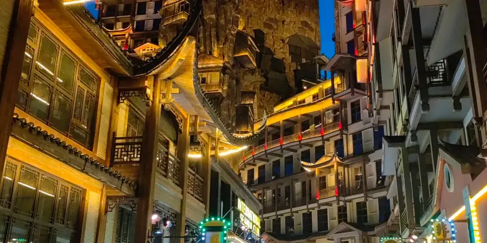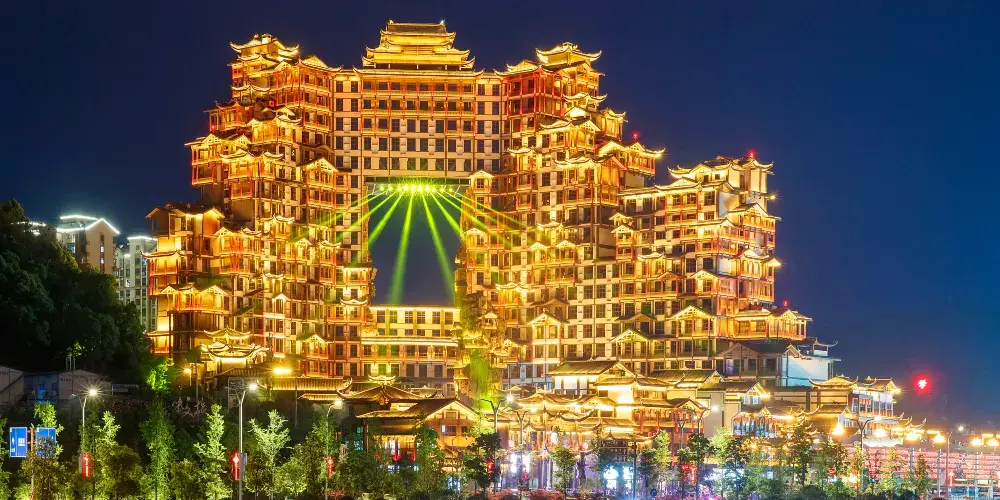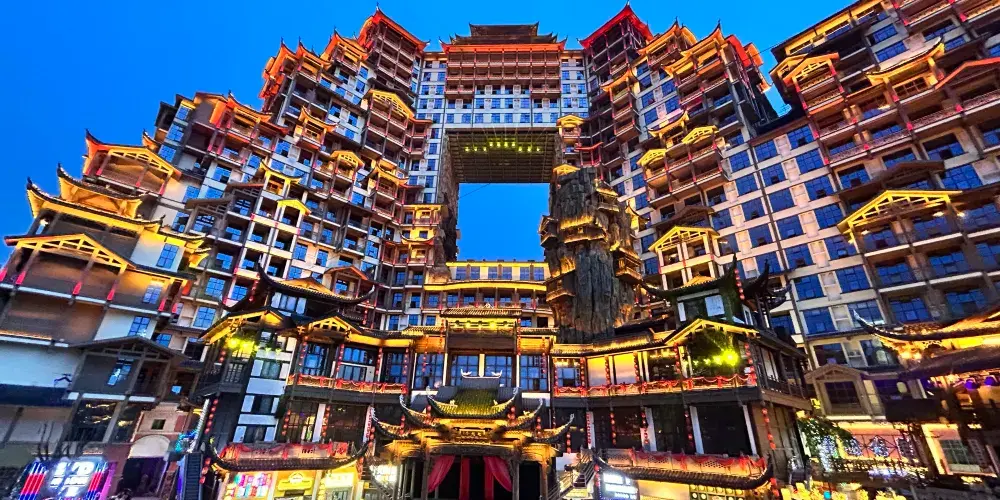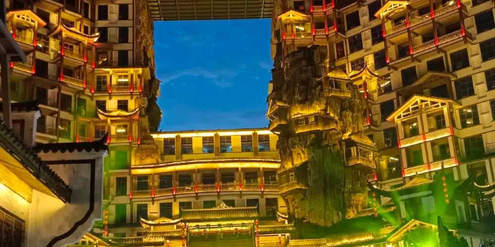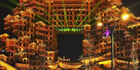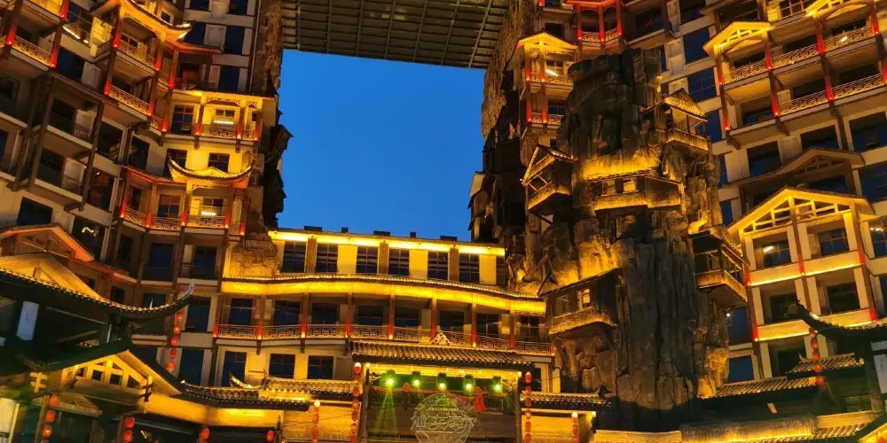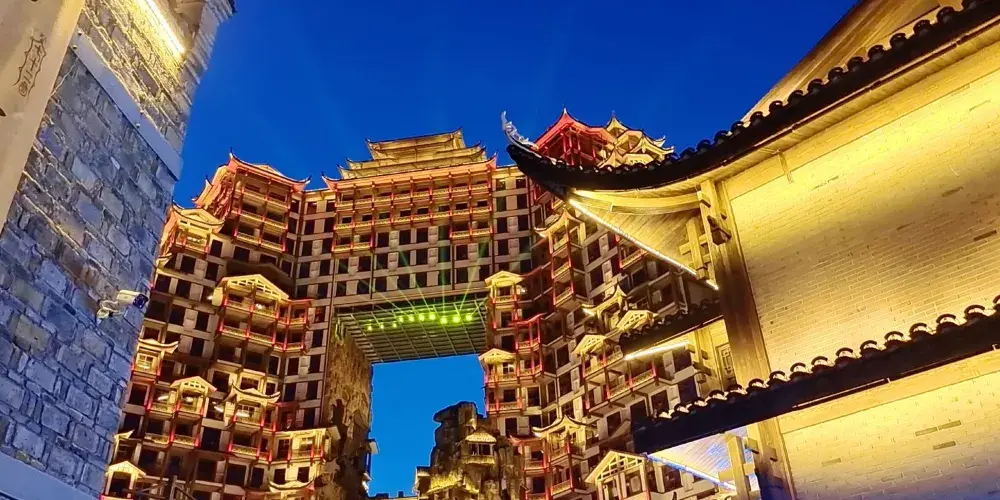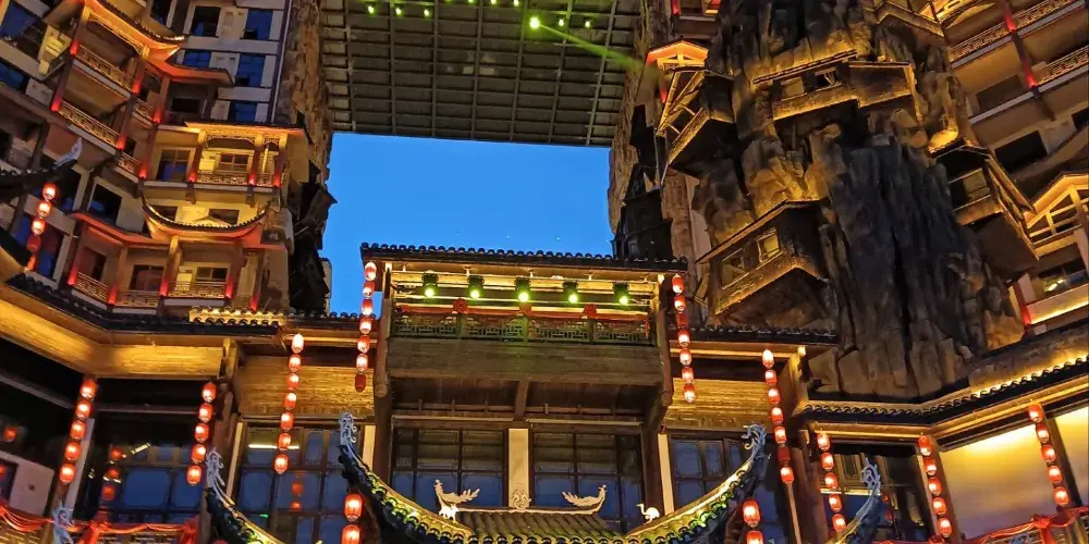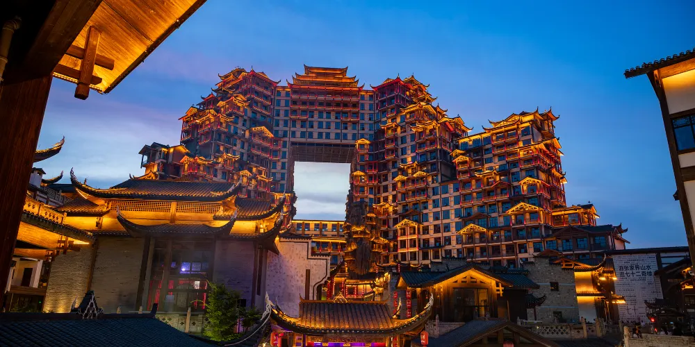 張家界七十二奇樓景區位於武陵山大道1號,地理位置十分優越,分為天宮奇樓、煙火老街、七十二奇寨三大板塊,被譽為“張家界文化地標”和“夜經濟新引擎”。