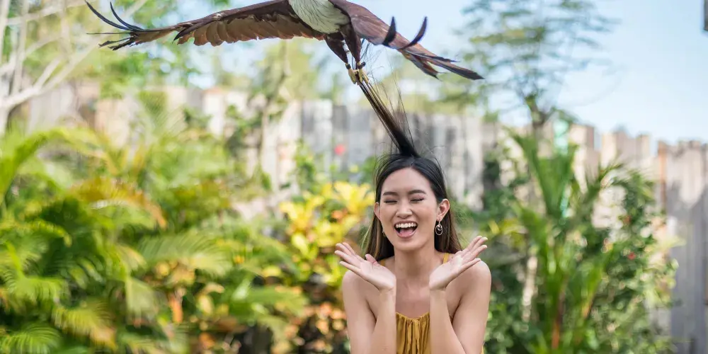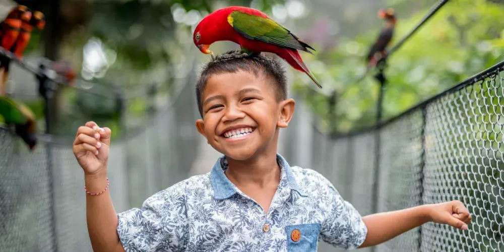 巴厘島鳥園雖不大,但布置得別具特色。園內有250多種珍奇鳥類,總數超過1000只,最珍貴的的是天堂鳥、白色的八哥等。