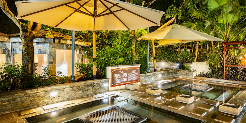 溫泉區擁有超過40個風格獨特的湯池,各具不同功效。您可盡情享受美顏湯池,如玫瑰花瓣池、三味美顏池、香薰池及茶浴池。追求活力體驗的話,不妨嘗試夢幻水療池、浮力按摩池及冰火池。親子家庭必定喜愛趣味親子泡泡泉、土耳其及印尼魚療池,以及兒童戲水池。此外,還可暢遊寬敞的戶外游泳池、河畔無邊際泳池,體驗紅外線桑拿及乾濕蒸氣房。