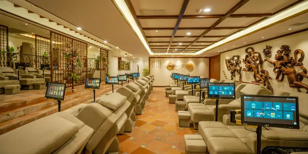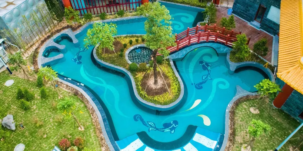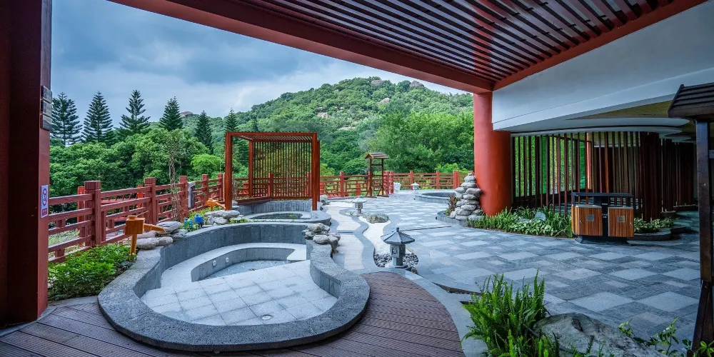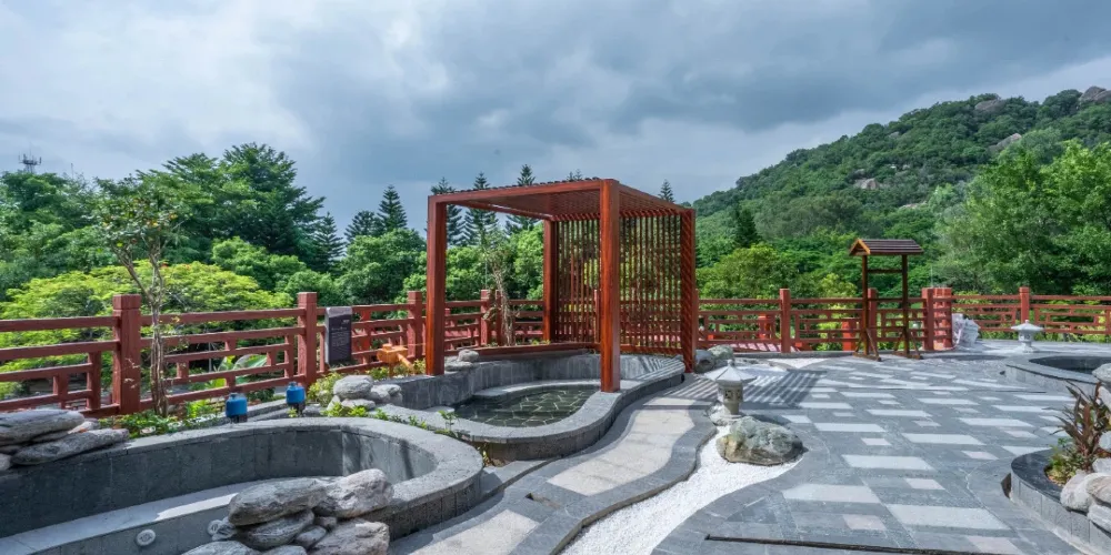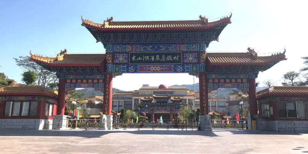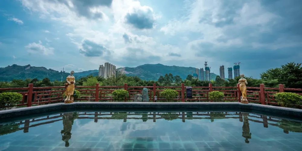 潮州東山湖溫泉度假村,位於潮州、汕頭、揭陽三市中心交界處的潮安區沙溪鎮。泉口溫度高達102℃,富含氟、硅、鍶等微量元素。度假村內的溫泉山是國內首創的洞天式空中溫泉,有99個風格各異的泡池。還有人造溫泉瀑布——流星瀑布,落差達16米。此外,度假村還配備了酒店、會議中心、娛樂中心等設施,是休閒度假的好去處。