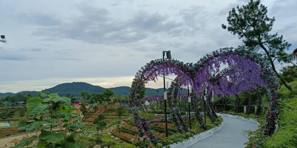 走進仙女谷,環山旅遊公路彷彿一條玉帶,依山而繞,將各座山頭景點連成一串玉珠。道路兩旁,700餘株茶花樹亭亭玉立,一些早開的梅花迎春綻放。樹枝上高高掛起的大紅燈籠,散發出濃濃的年味。遊客們三五成羣,吊威亞,玩自拍,品茗茶,享受着谷中休閑的愜意。