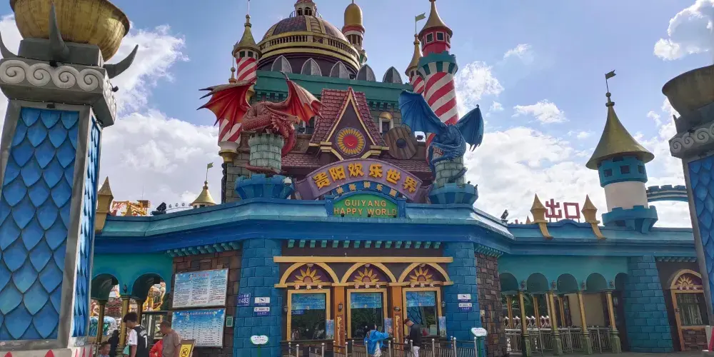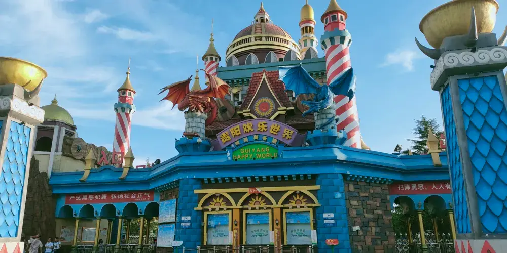 貴陽歡樂世界坐落於城區西北部,由原白雲公園改建而成,是動漫為主題的遊樂園。園中的遊樂項目有很多,在這裡你可以體驗懸掛過山車、挑戰者之旅、高空飛翔等驚險項目,還有比較輕鬆的極速風車、旋轉迪士高、飛舟衝浪、颶風飛椅等,還可以坐上108米高的摩天輪看風景,另外還有適合小朋友的親子項目、和以動漫為主題的魔獸世界、太空漫遊、奇境穿梭、4D影院等,讓你玩得盡興。