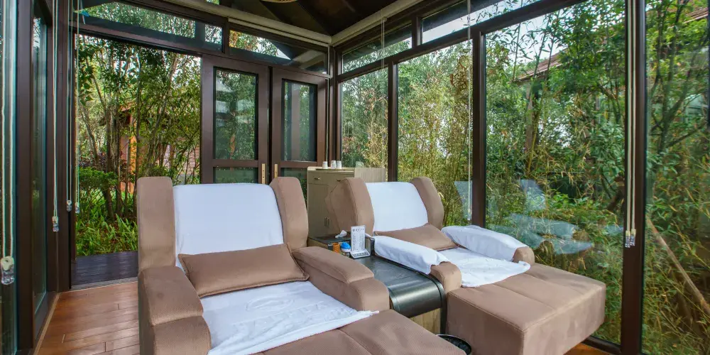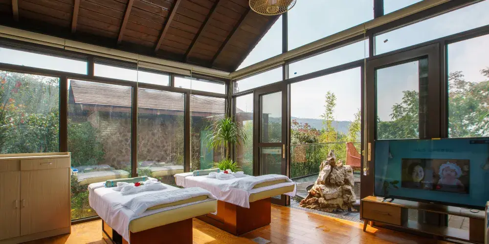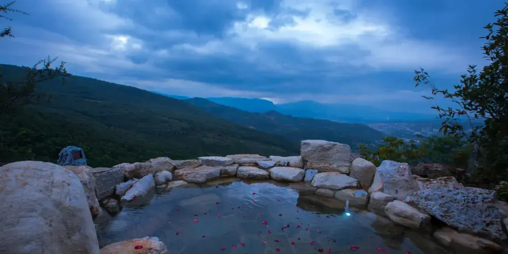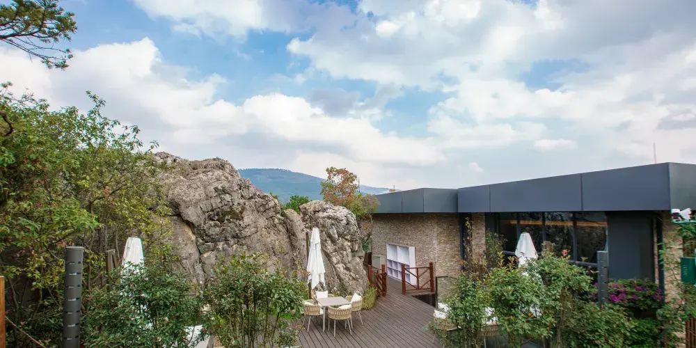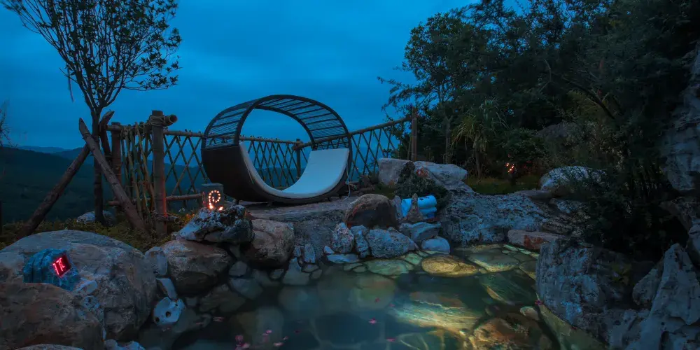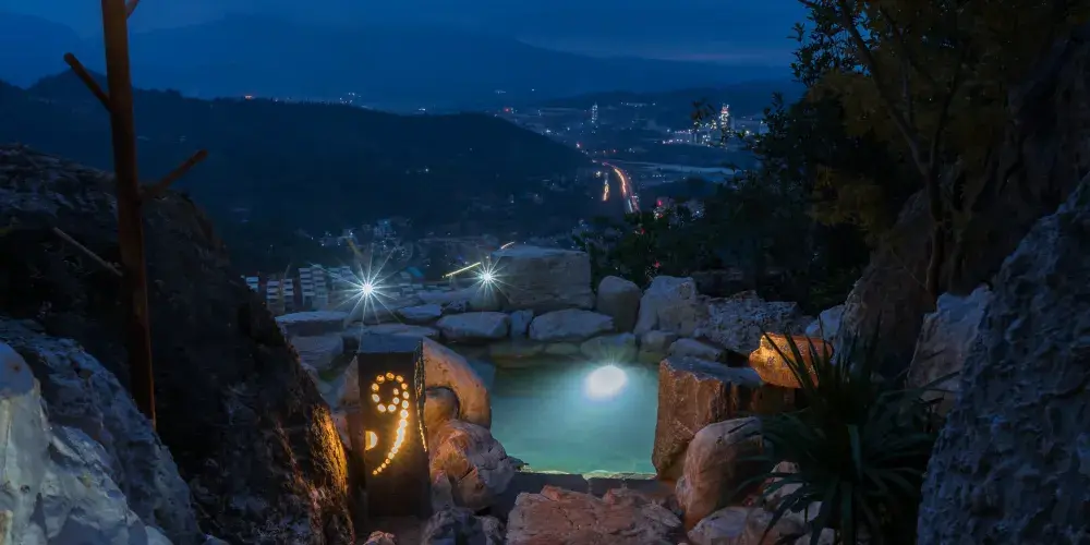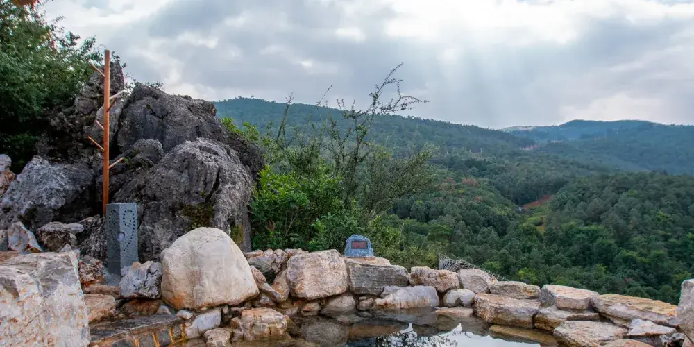 漢華天馬山國際温泉度假區,位於雲南省昆明市西北部,總佔地面積約為10000畝,京昆高速、108國道穿境而過,地理條件優越。項目依託天馬山和黃坡水庫兩大優質生態資源,以萬畝森林的獨特地形地貌與資源特點為基礎,以山野生活為文化核心,將打造出以温泉療養、健康養生、生態田園、户外運動、高山度假等為一體的中國山嶽型温泉康養旅遊度假目的地。三大主題產業小鎮梅林小鎮、來野小鎮、雲澤小鎮一期展示區為度假區的梅林小鎮的中心,結合森林及地形地貌特點,以寓教與娛,自然科普為核心,打造昆明有特點的親子户外森林樂園,也將是昆明親子森林自然科普基地及研學拓展基地。二期來野小鎮,以高山健康運動為主題,打造高山體育運動基地和高山健康中心;後期將擴展原鄉小鎮,以高山農莊、四季花海、高山熱氣球、高山牧場、婚紗攝影基地為核心,打造原味鄉野主題片區。三期雲澤小鎮,以黃坡水庫為核心資源,在其周圍打造山水會議中心,半山觀水酒店,禪修療養中心,苗風村寨等為核心的水韻片區。天馬山度假區-凌崖湯泉在奇石嶙峋的喀斯特地貌基礎上,為人們尋找到一塊能夠全身放鬆的世外桃源。規劃佔地約5442㎡,獨特温泉水包含着多種礦物質。臨崖的無邊際泳池直麪林海松濤,玻璃觀景平台更能感受到自然對靈魂的梳理。原木、綠植、光影、飛鳥及原石的元素構成了温泉的舒適環境,温泉採用預約制度,保障温泉體驗的優質服務。茶餐廳及吧枱可以提供健康時尚的輕飲食。