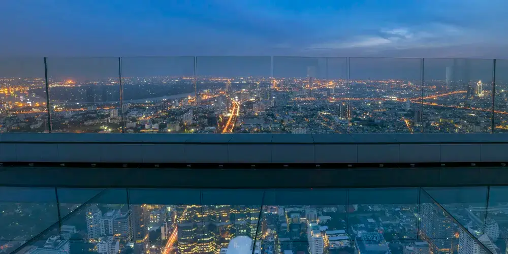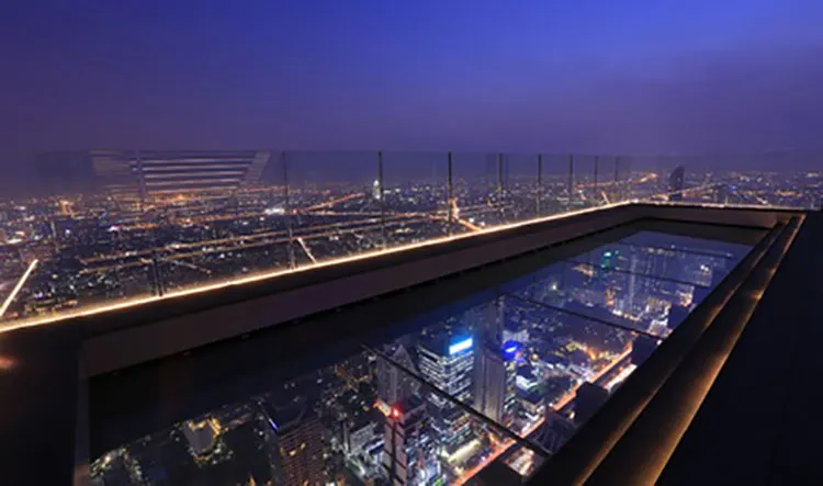• 漫步於巨大的玻璃地板天空步道,距離繁華的泰國首都310米高空