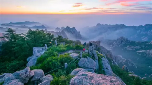 除了仰口,嶗山的第二個美景就在巨峰風景區。巨峰是嶗山主峰所在,其中的嶗頂為至高點。這裡主要以爬山為主,是嶗山旅遊較耗體力之處。巨峰亂石疊嶂,氣勢恢宏,晴天可看海,陰天可觀雲海,而在嶗頂觀日出,可以看到美不勝收的迷人畫面。