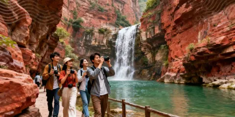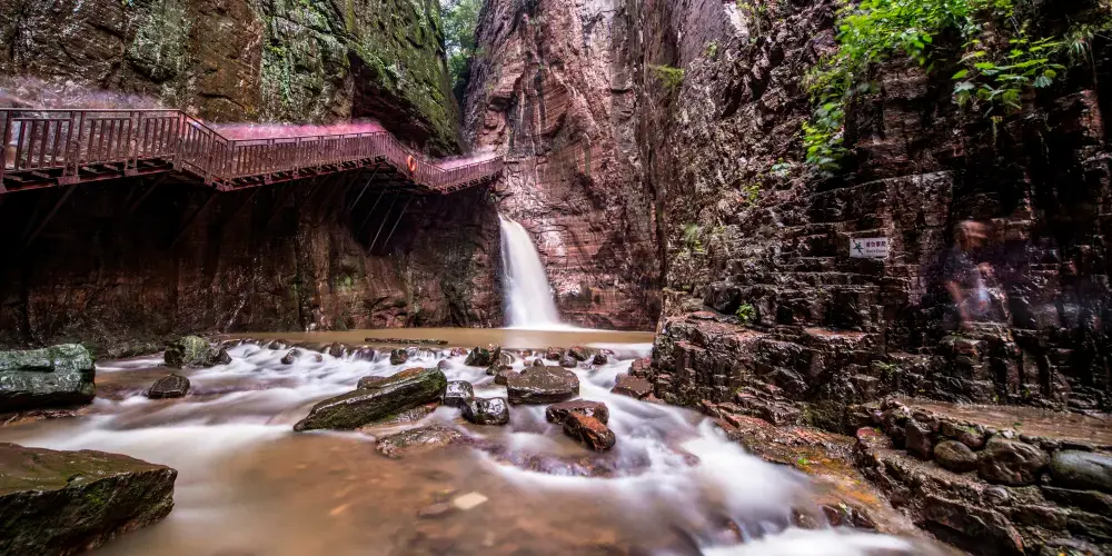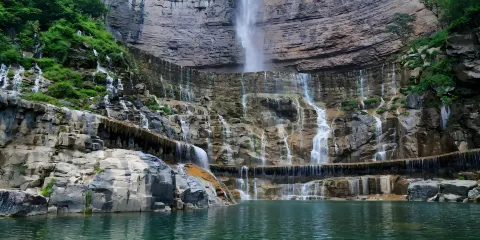 龍潭大峽谷位於洛陽市新安縣北部,景區內有很多地質奇觀,比如高峽甕谷、水往天上流等奇特景象。峽谷內的自然風光也非常迷人,清澈的溪流和從絕壁飛濺而下的瀑布、深潭隨處可見,還可以挑戰高空滑索、攀岩、橡皮艇等戶外活動,是避暑的好去處。