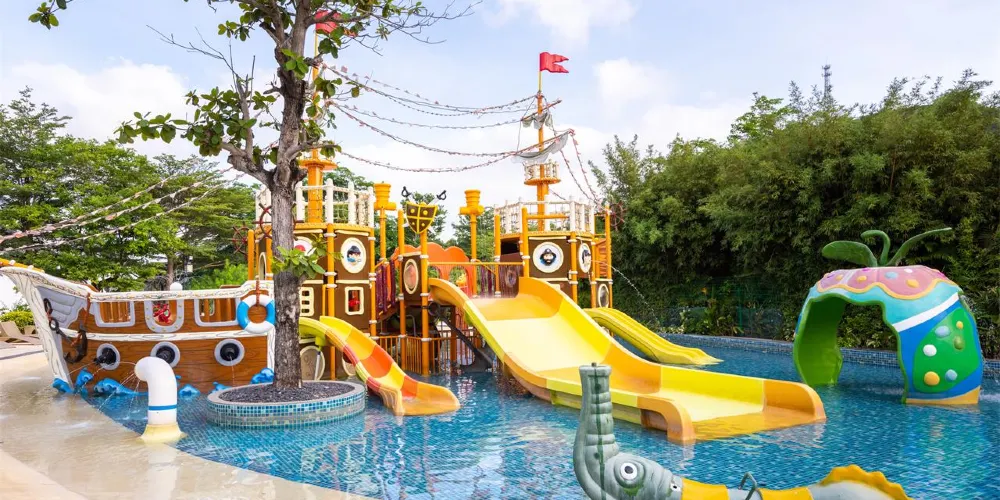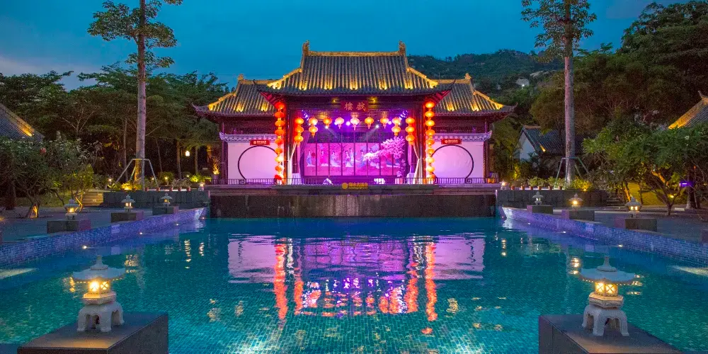 御水古温泉旅遊度假區傾情打造繽紛多彩的「水上童話王國」,夢幻城堡、互動水屋、水滑梯、衝浪池等多種戲水設施任您暢玩,溫泉與娛樂相結合,白日盡享征服水上世界的樂趣,領略一番別有趣味的花式玩水。每晚還有準時上演的風情雅趣,如詩音舞劇《泉說》、古韻歌舞劇《寓意石》,觀看跨越千年的古溫泉緣起和愛情故事,置身於宮廷般的氛圍,泡在溫泉池裡享私家山水秀場。